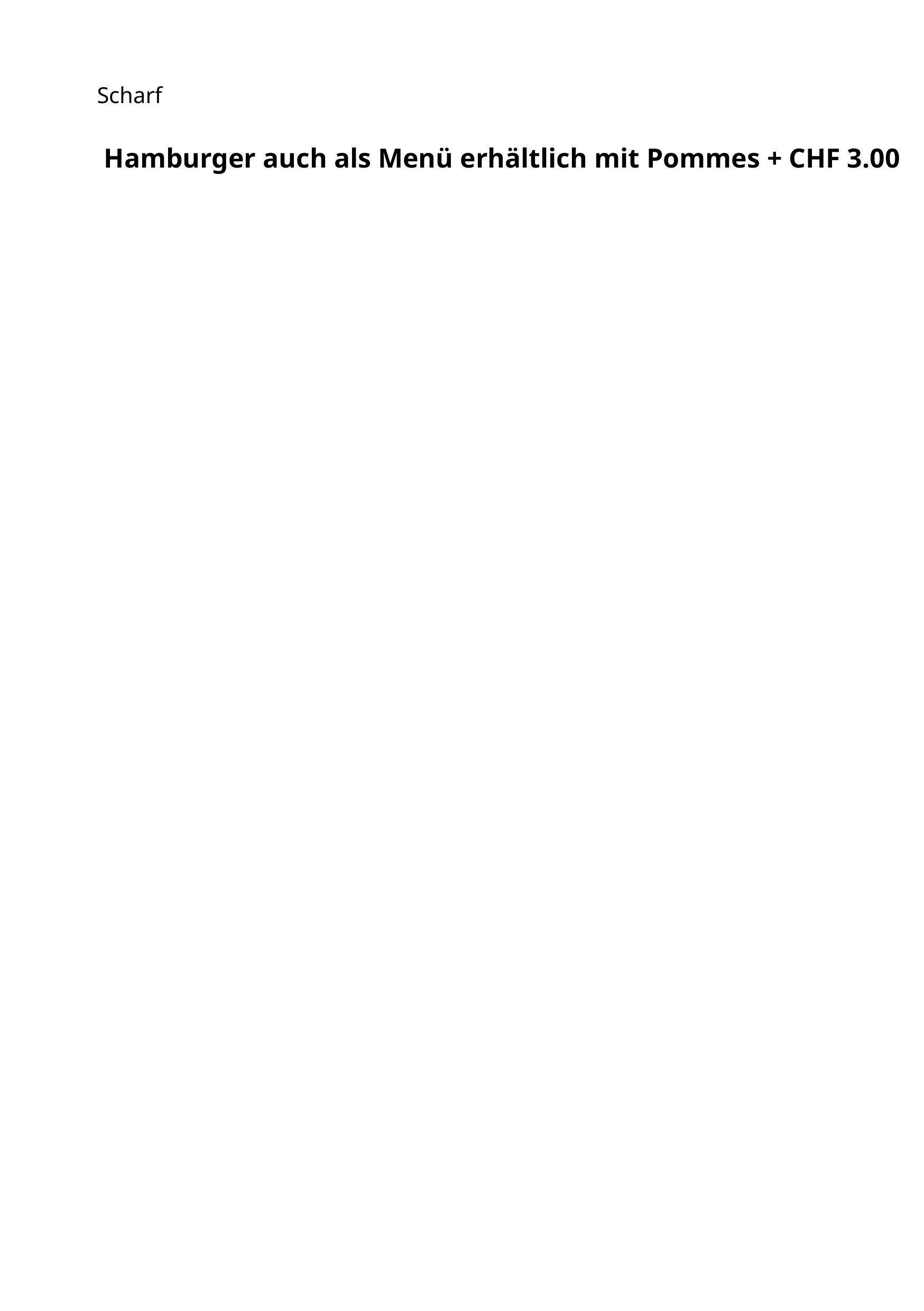 - Pommes, Chicken Nuggets, Pepitos, Hamburger & Cheeseburger